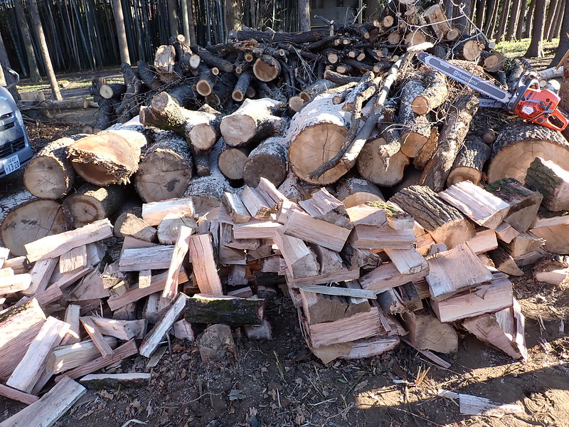 倒木や間伐、日頃の整備などで多くの間伐材や残材も出ます。